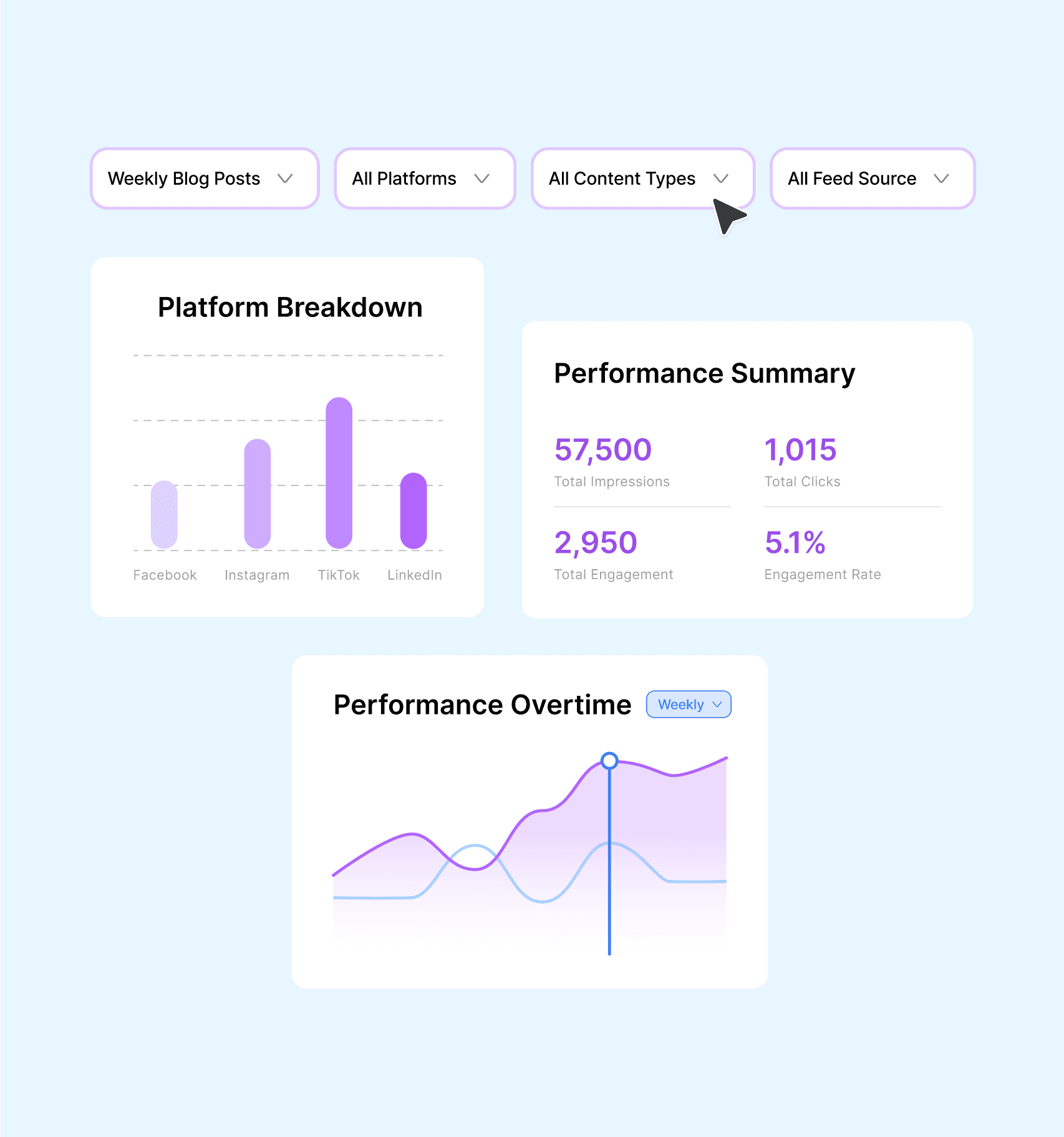 Give each client their own clear view of posts, results, and progress — no messy spreadsheets needed.