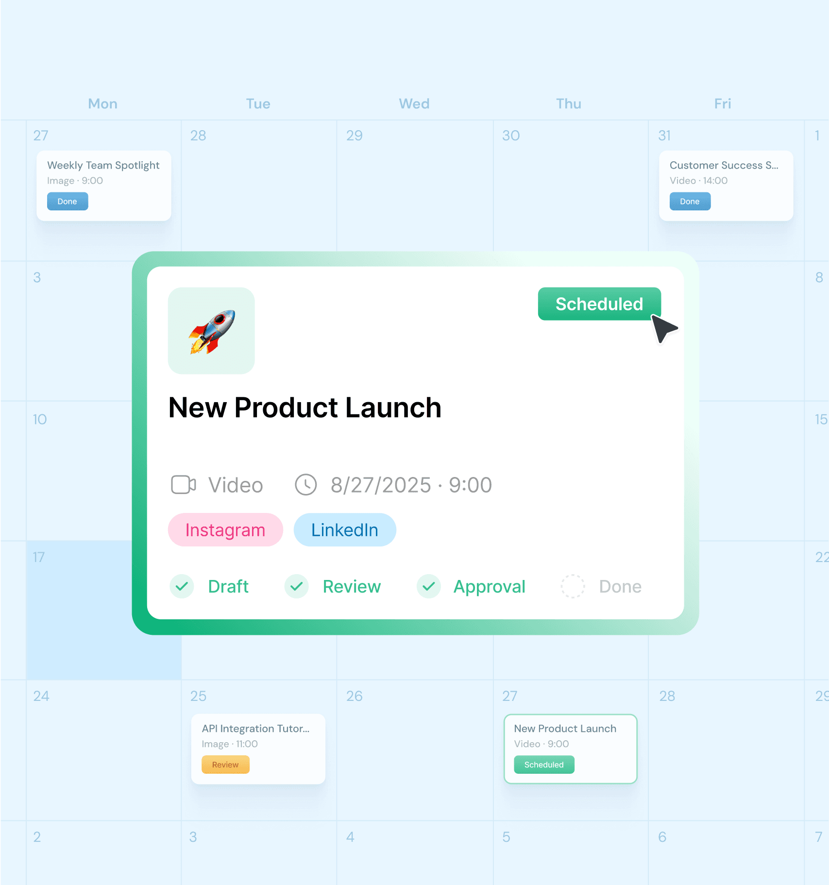 Streamlined approval workflow that lets you review and approve content with a single click, keeping your content pipeline flowing.